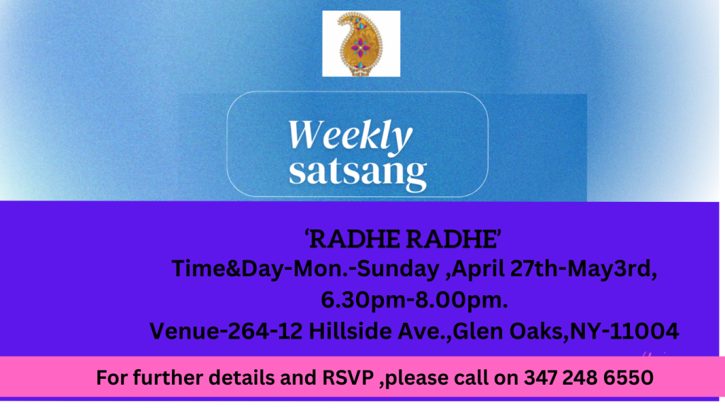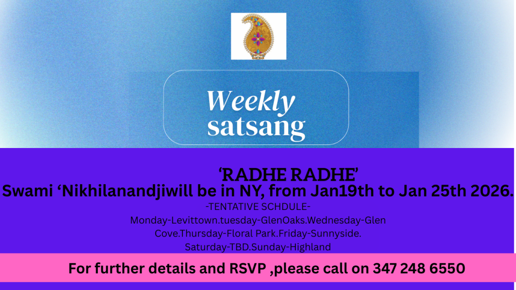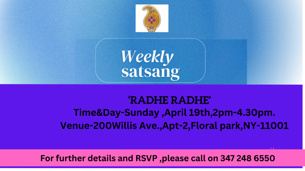Upcoming weekly Satsang details-